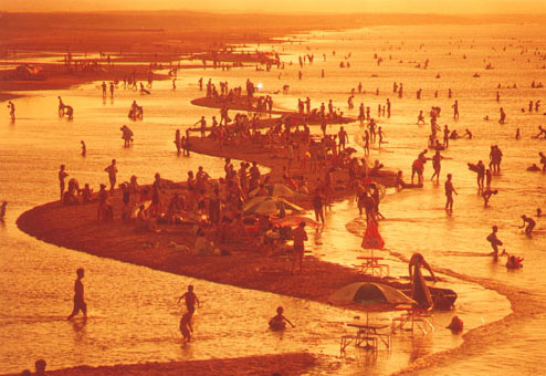 ? ? 1993年10月26日,經(jīng)山東省人民政府批準(zhǔn),煙臺金沙灘旅游度假區(qū)成立。它西起煙臺經(jīng)濟(jì)技術(shù)開發(fā)區(qū)的崗崳山至夾河口,經(jīng)芝罘區(qū)的芝罘島,東至萊山區(qū)的黃海旅游帶,沿海濱拓展,總面積為23.5平方公里。金沙灘度假區(qū),大海碧波萬頃,沙灘細(xì)柔潔凈,林帶郁郁蔥蔥,山水林灘相映成趣,景色秀美,氣候宜人。沿海濱風(fēng)光旅游帶,依次分布有金沙灘國際海水浴場(現(xiàn)改為金沙灘海濱公園)、七彩城嬉水樂園、秦始皇東巡宮、陽主廟、芝罘島觀光索道、黃海游樂城等各具特色的旅游景點(diǎn)。度假區(qū)內(nèi)交通便利,綠地翠蓋,旅游服務(wù)設(shè)施日益完善,已建有三星級飯店4座、二星級飯店1座、旅游涉外飯店8座,旅游度假別墅群、公寓樓娛樂設(shè)施齊全,初步形成了休閑度假的旅游環(huán)境。 因公園內(nèi)沙灘細(xì)柔潔凈,在陽光下泛著金色的光輝,“金沙灘”之名由此而來。國家4A級景區(qū)、國家旅游度假區(qū)。位于煙臺市經(jīng)濟(jì)技術(shù)開發(fā)區(qū)北部。公園內(nèi)最具特色的景觀是萬米沙灘,沙灘長10000米、寬60-180米,沙礫幼細(xì),色澤金黃,面積廣大,坡度平緩,素有“中國北方第一海灘”的美譽(yù)。夏季中午水溫25℃左右,是我國最優(yōu)良的天然海水浴場之一。2002年,被國家海洋局列為國家重點(diǎn)海水浴場,納入國家健康型海水浴場監(jiān)測網(wǎng)絡(luò),海水的各項監(jiān)測指標(biāo)均達(dá)到國家一類標(biāo)準(zhǔn)。1993年向社會開放以來,先后增設(shè)了電瓶車、觀光臺、了望塔兒童樂園、攀巖等觀光游樂設(shè)施,旅游項目主要有沙灘排球、足球、沙灘摩托和驚險刺激的水上娛樂項目。