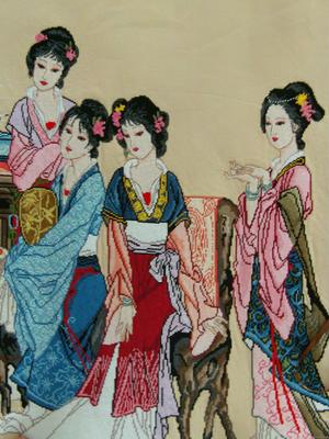 華山刺繡:刺繡是一種融實(shí)用與審美為一體的藝術(shù)形式,通過(guò)線(xiàn)條與色彩的搭配在窗簾、門(mén)簾、鞋墊、馬鞍等日常生活用品上創(chuàng)造出栩栩如生的花鳥(niǎo)蟲(chóng)魚(yú)、戲曲人物等,寄托勞動(dòng)人民的喜怒哀樂(lè)和對(duì)美好生活的向往,作品風(fēng)格以粗獷恣意、色彩艷麗而見(jiàn)長(zhǎng)。